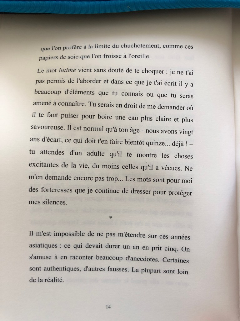 C’est à cette question qu’il va tenter de répondre dans une lettre à son filleul, seule personne à qui il confiera ce qu’il a été, ce qu’il a désiré, ce en quoi il a cru, comme un ultime testament.