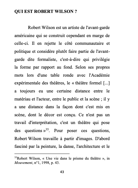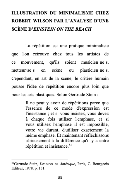 Titre : Mutations du minimalisme dans le travail de Robert Wilson