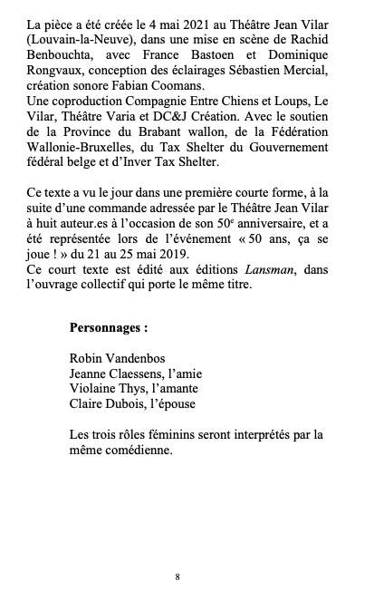 20 novembre 2024 – Evénement : L’Académie royale de langue et de littérature françaises de Belgique a pré-sélectionné « L’expiation (ou le purgatoire de Robin Vandenbos) » pour le grand prix des arts du spectacle 2024. Bravo à Pietro ! Lien vers l’article de Le carnet les instants.