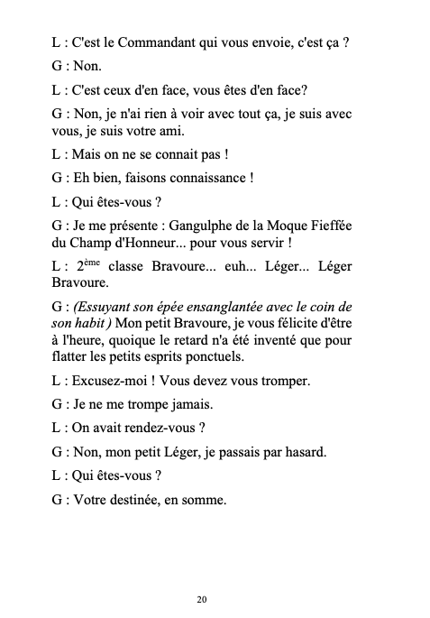 Léger, survivant d’une guerre qu’il n’aurait pas dû faire, a ramassé sur le corps d’un soldat mutilé et méconnaissable une lettre d’amour, il s’accroche à cette lettre comme à la vie. Il tente de retrouver la femme qui a écrit la lettre lorsqu’apparaît Gangulphe, un personnage issu de son imagination, venu tourmenter ses derniers instants.