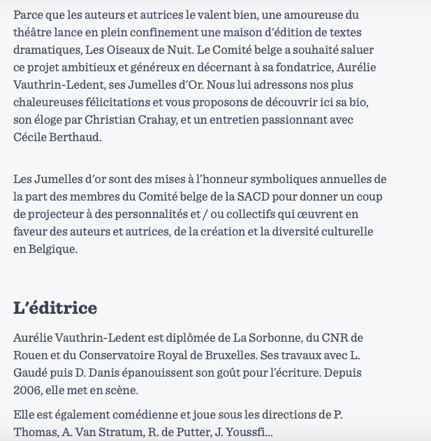 2 des 5 oeuvres nominées pour le grand prix des Arts du spectacle sont édités par les Oiseaux de nuit :