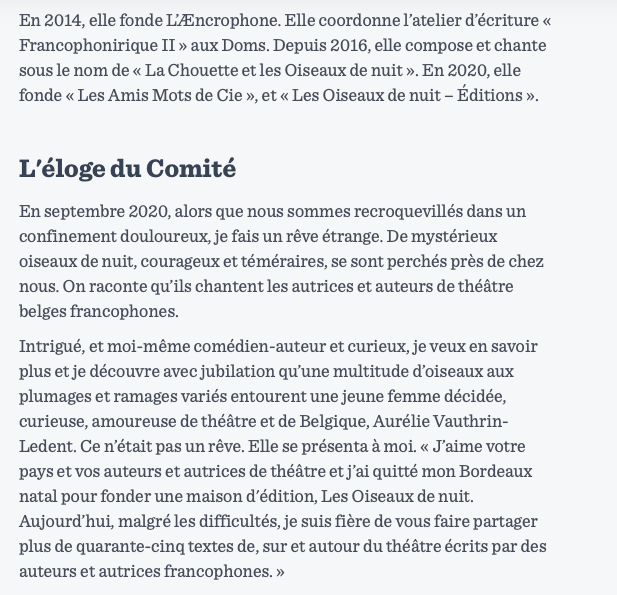 Bravo Stéphane et Pietro ! C’est une fantastique reconnaissance pour Les Oiseaux de nuit Editions.